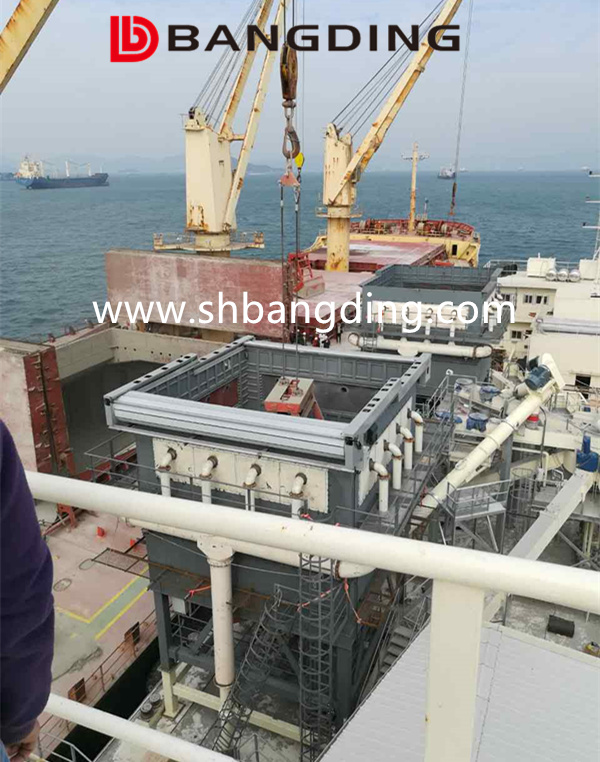 Dust proof hopper delivery, because now all over the world advocate environmental protection, in order to reduce the dust pollution to the environment in the process of loading and unloading, the remote control grab work between dust proof hopper the cement clinker handling within the cabin to another ship.